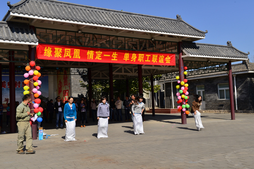 下午2点,室内趣味游戏在公司多功能厅展开。男、女双方均事先在卡片上留下姓名、兴趣爱好等信息,随后进行了男女组队游戏“甜蜜大连蹲”、“猪八戒背媳妇”等,在最后的环节——“心动时刻”,男、女双方互赠卡片。