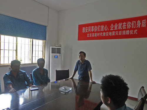 6月9日中午12点30分,北京高能时代环境技术股份有限公司工会在株洲项目部举行了“雅安同事你们放心,企业就在你的身后”的捐赠,为四川雅安地震中受灾的两名员工李根均、李根平兄弟送去慰问与关怀。