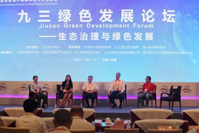 本届“海科会”为推动绿色发展找到开拓性思路和可行性方案,搭建对接和洽谈平台,于12日在成都锦江宾馆召开“九三绿色发展论坛”。九三学社中央主席韩启德、四川省人民政府副省长刘捷、九三学社四川省委副主委沈光明等领导致辞,四川大学教授王玉忠等专家在论坛上做了主旨演讲。