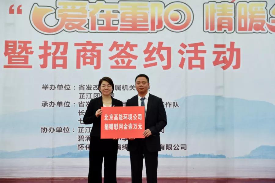 高能环境代表邓灵燕女士向七甲坪村捐赠慰问金