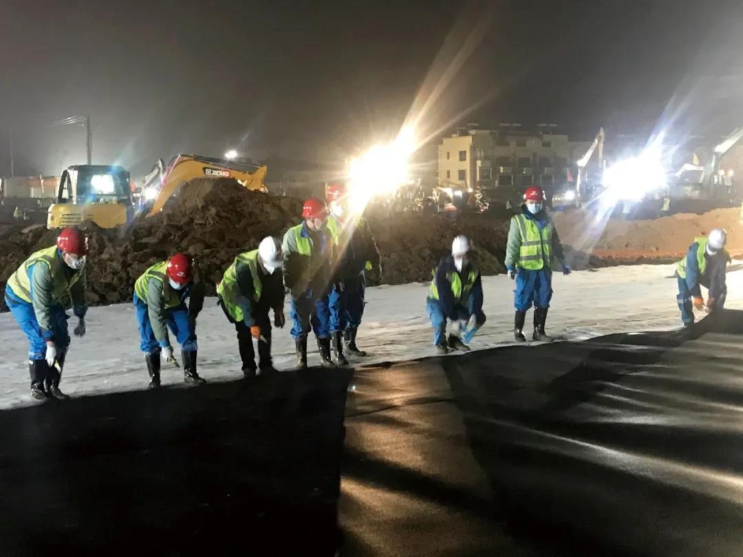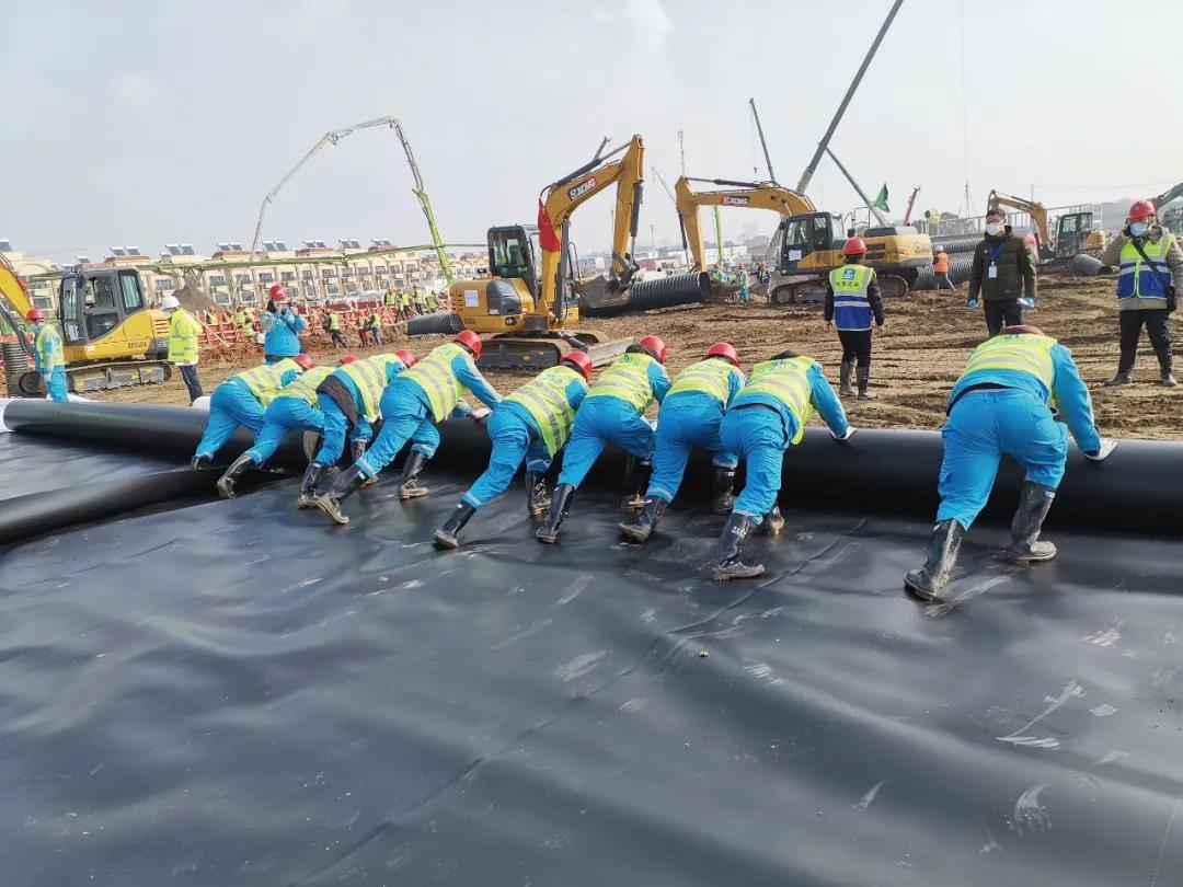 高能环境应急团队为火神山医院铺设防渗膜