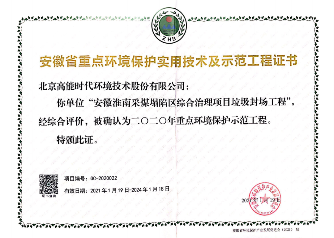 为促进科技成果转化应用,充分发挥实用技术及示范工程的引领作用,近日,安徽省环境保护产业发展促进会公布《2020年安徽省重点环境保护实用技术及示范工程目录》。高能环境安徽淮南采煤塌陷区综合治理项目垃圾封场工程(以下简称“淮南项目”)入选该目录。